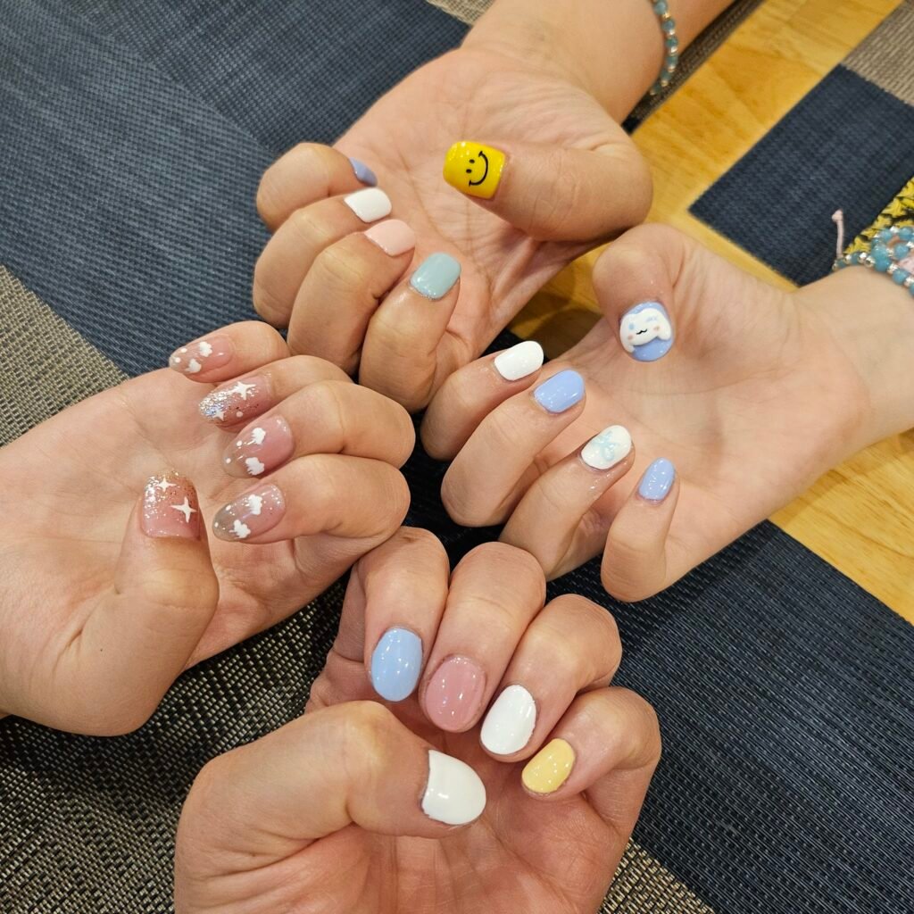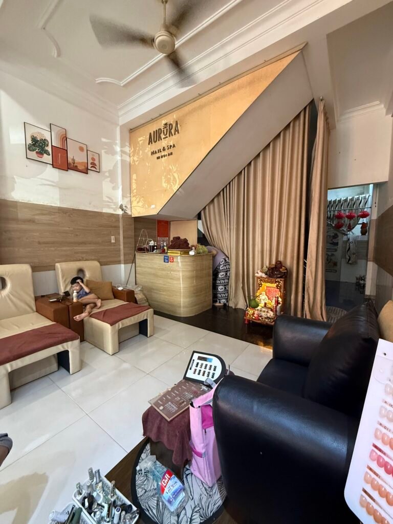 A small, calm nail salon where the owner does pedicures while a technician handles your manicure at the same time – so you’re done in one sitting, not two. The cat-eye gel work gets called out specifically and repeatedly, which tells you something about their specialty. Prices are honest: gel manicure runs around 190,000 VND, add basic cuticle care for 100,000 VND, and they’ll round it down if you’re getting both nails and a pedi together.
