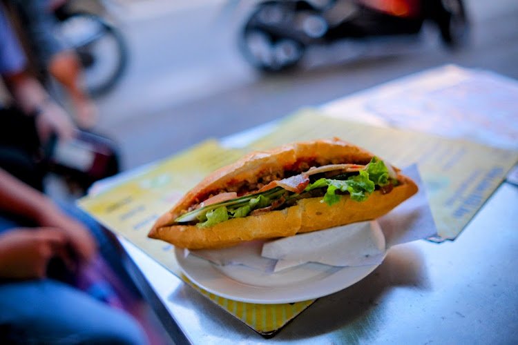 Street seating, no frills, low prices. This is banh mi as a practical meal, not a performance. (Your food tour guide probably brought you here, which tells you everything.)