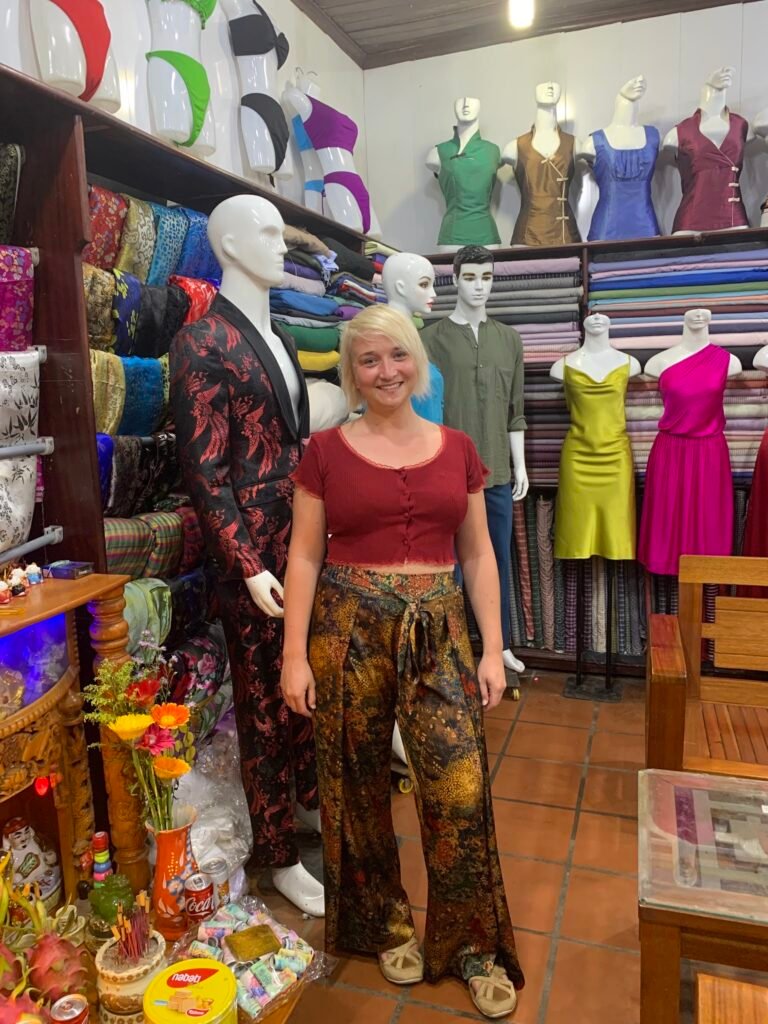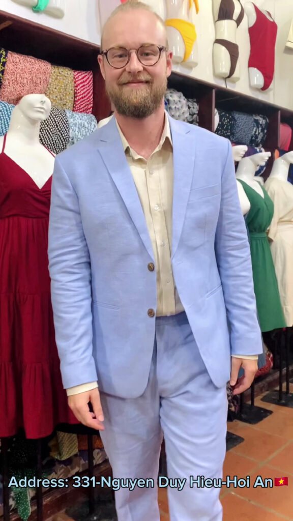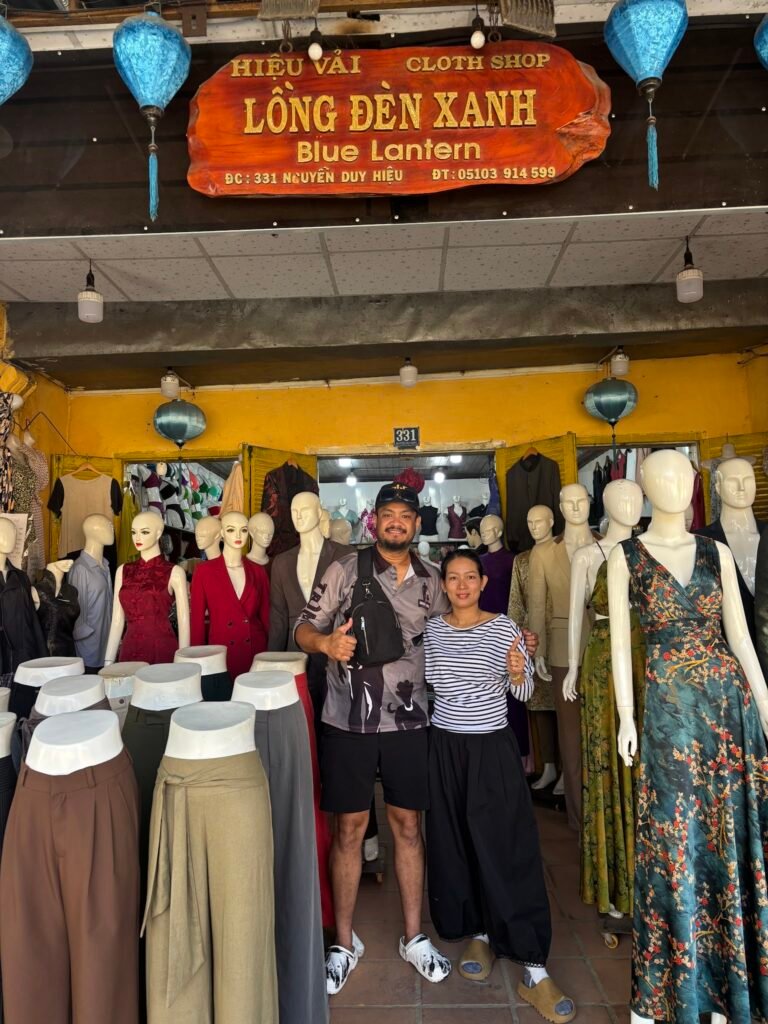 Blue Lantern does custom tailoring fast – pants, tops, dresses, and sets turned around in one to two days without the usual Hoi An runaround. The staff (ask for Lana or Moon) are patient with indecisive customers and will work through WhatsApp to nail the fit after you’ve left for adjustments.