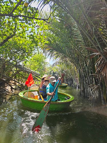 Basket boat tours through the coconut palm-lined waterways of Cam Thanh, with guides who treat the whole thing like a performance. Cuong, Dong, Van and the rest of the crew spin the boats, teach you to fish for crabs, fold coconut leaves into roses and fish shapes, and somehow get everyone singing. It’s an hour or so of genuine silliness on the water, not a solemn heritage experience.