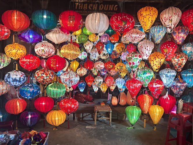 A lantern shop that doubles as a photo booth spot, right in the old town. Pay 10,000 VND to pose in front of the display, or actually buy lanterns to take home. The photo setup has proper lighting, which puts it ahead of just standing in front of any random shop doorway.