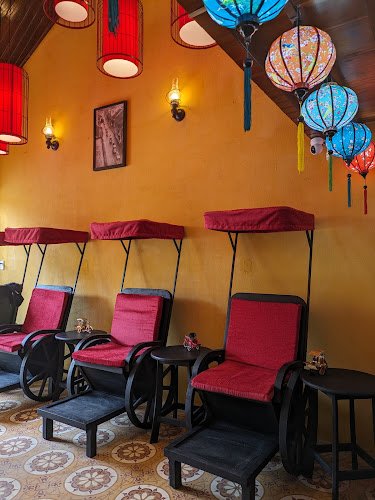 A small café in the heart of the old town that does the Vietnamese coffee classics properly – salt coffee, coconut coffee, and an actual intense espresso for those tired of weak tourist-trap brews. The cyclo seats and lantern ceiling make it one of the more photogenic spots in the area (yes, everyone does take the same photo, and no, that doesn’t make it less fun). You can also rent áo dài here for both men and women if you want to wander the old town in traditional dress.