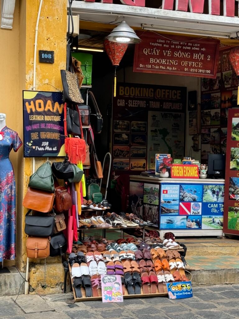 Harry Leather House (formerly Hoan Leather) does custom shoes, sandals, and bags in a small shop where you pick your leather, your style, and your measurements. The fast turnaround is real – bespoke sandals in a day or two – and Harry himself will apparently ship your order to Hanoi or deliver to your hotel if something needs fixing.