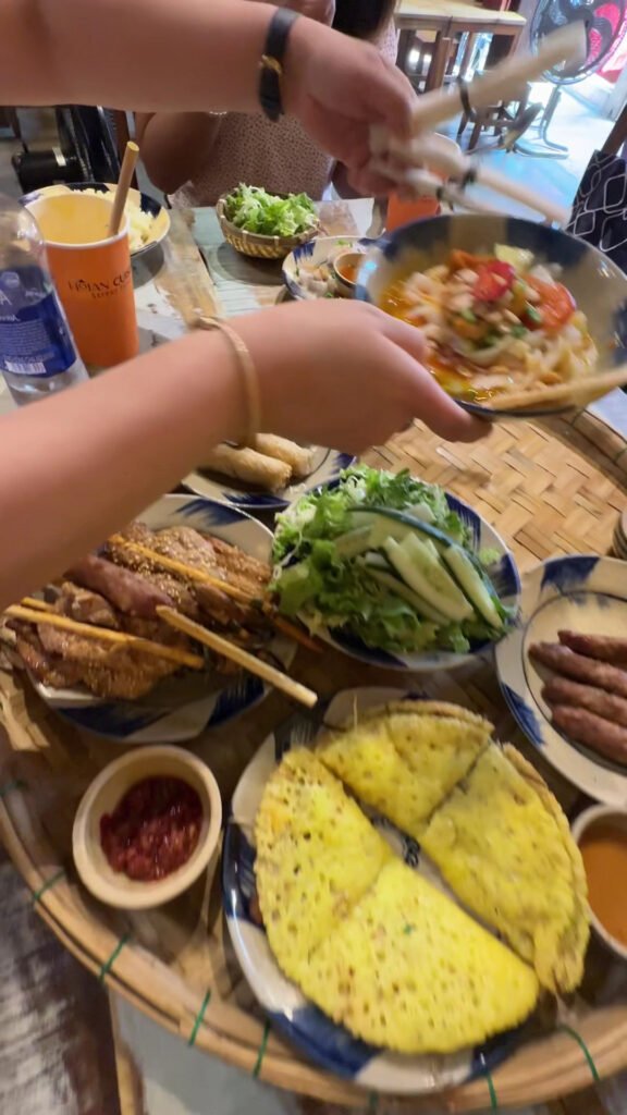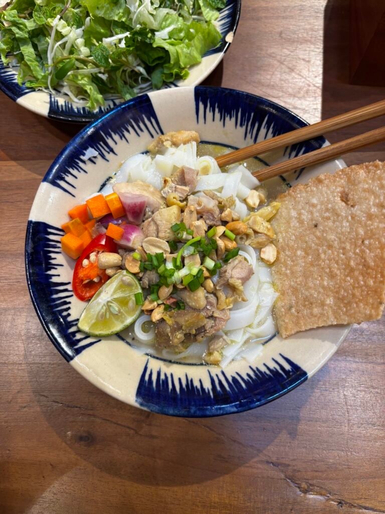 A Tran Phu spot built around combo platters – think Combo 4 or Combo 6 – that let you graze across Hoi An classics like spring rolls, chicken salad, and cao lau in one sitting. The portions are genuinely large (order for two and expect leftovers), and you can watch the kitchen work from your table, which is a nice touch on a slow afternoon.