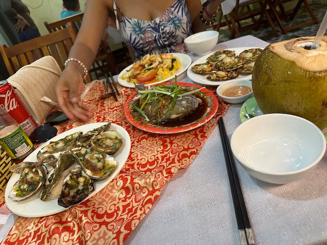 Lucky Beach is a family-run seafood spot where the fish arrives daily from their own fishermen – which means what’s on the grill is actually fresh, not ice-bin fresh. The charcoal BBQ does most of the heavy lifting, and that house-made dipping sauce keeps coming up in reviews for a reason.