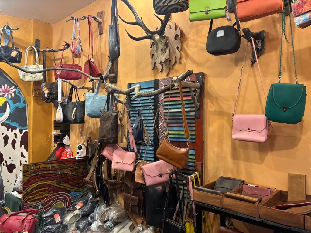 The range covers belts, wallets, watch straps, and bags – and the designs are their own, not the copy-paste catalogue you’ll see in the dozen shops nearby. Free name engraving is standard, not a upsell.