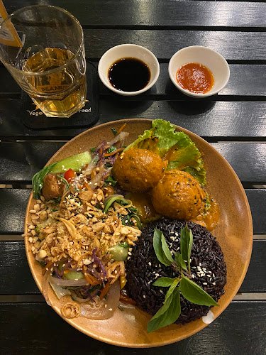 Peanuts sits just outside the old town proper, which keeps the prices lower and the crowds thinner. The menu does vegan versions of crowd-pleasers – orange chicken, pad thai, banh mi, eggplant stew – and most of them actually taste like the real thing rather than sad substitutes. The sourdough banh mi and the soy-lime balls are the two things people seem to order twice in the same day.