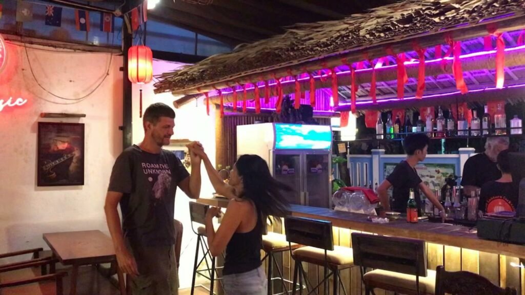 The vibe skews relaxed – locals and travelers mixed together, peanuts arriving with your drinks, acoustic music drifting through warm air. The kind of bar you pop into for one beer and leave two hours later having made plans to come back tomorrow.