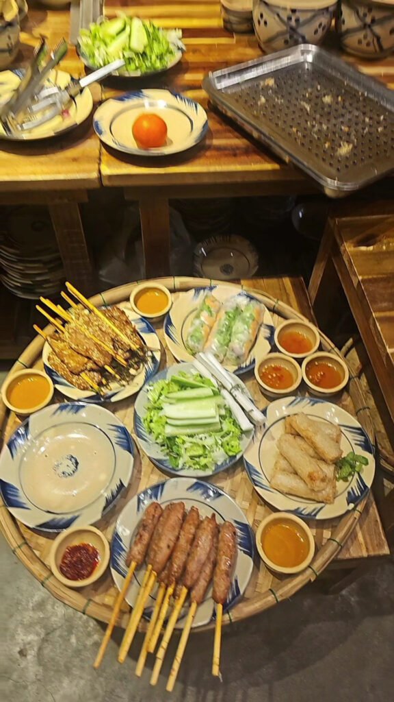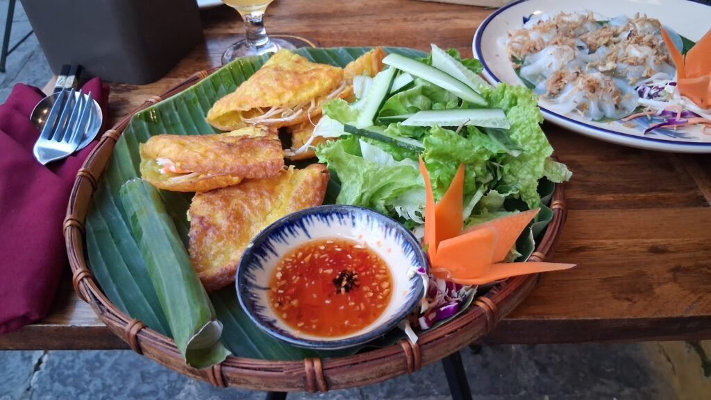 A Vietnamese restaurant and bar sitting right on the lantern-lit walking street, where you can watch the old town foot traffic while working through a claypot fish or a plate of whatever they’ve adapted for your dietary needs. The upstairs seating is notably cooler during the brutal midday heat (37 degrees is not a joke), and the craft beer selection means you’re not stuck with the usual Bia Hoi situation.