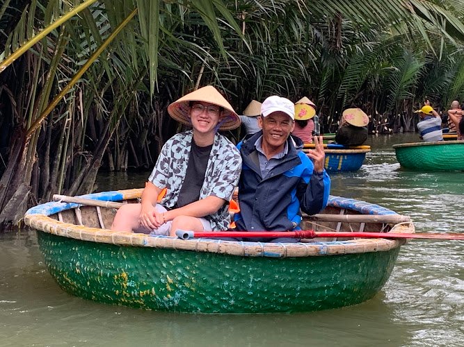 A bamboo basket boat tour on the river near Hoi An, run by a guy named Coco who clearly enjoys his job. You paddle through the water palms, try your hand at crabbing or fishing, and at some point Coco will spin your boat like a top while grinning at you (this costs extra and is absolutely worth it).