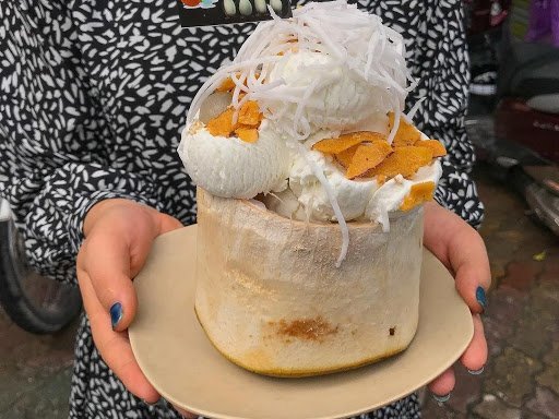 Tiệm Chè Xíu is the go-to spot for chè in Hoi An, with a menu long enough to cause genuine decision paralysis. The coconut ice cream is the standout – served in a coconut shell, super creamy, and popular enough that you’ll see people eating it on the street outside at night. The Madagascar coconut ice cream with longan jam is the locals’ pick, and the chè Thai with durian is worth ordering even if you think you don’t like durian.