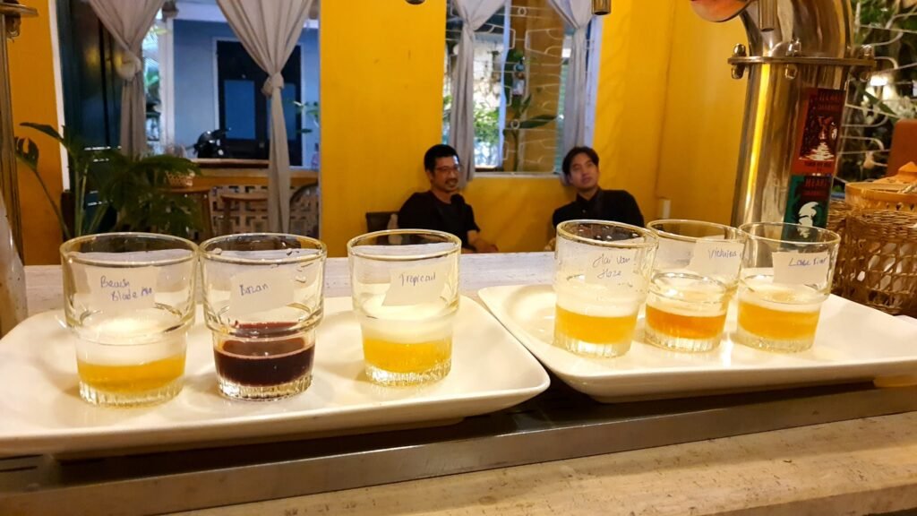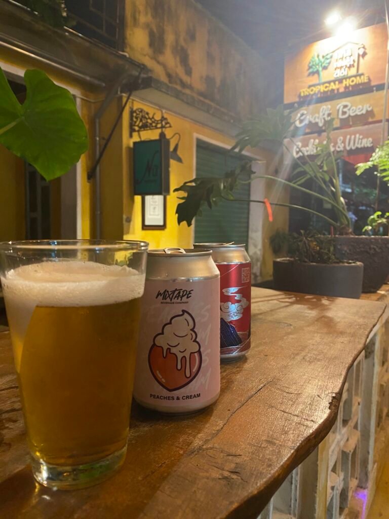 A craft beer bar tucked down an alley just off the main old town drag, which means it’s actually quiet enough to have a conversation. The fridge lets you browse and pick your own bottle, the taps are solid, and the staff (ask for Tan) know what they’re pouring. They also carry 7 Bridges, the Hoi An local brewery, which is reason enough to stop in on its own.