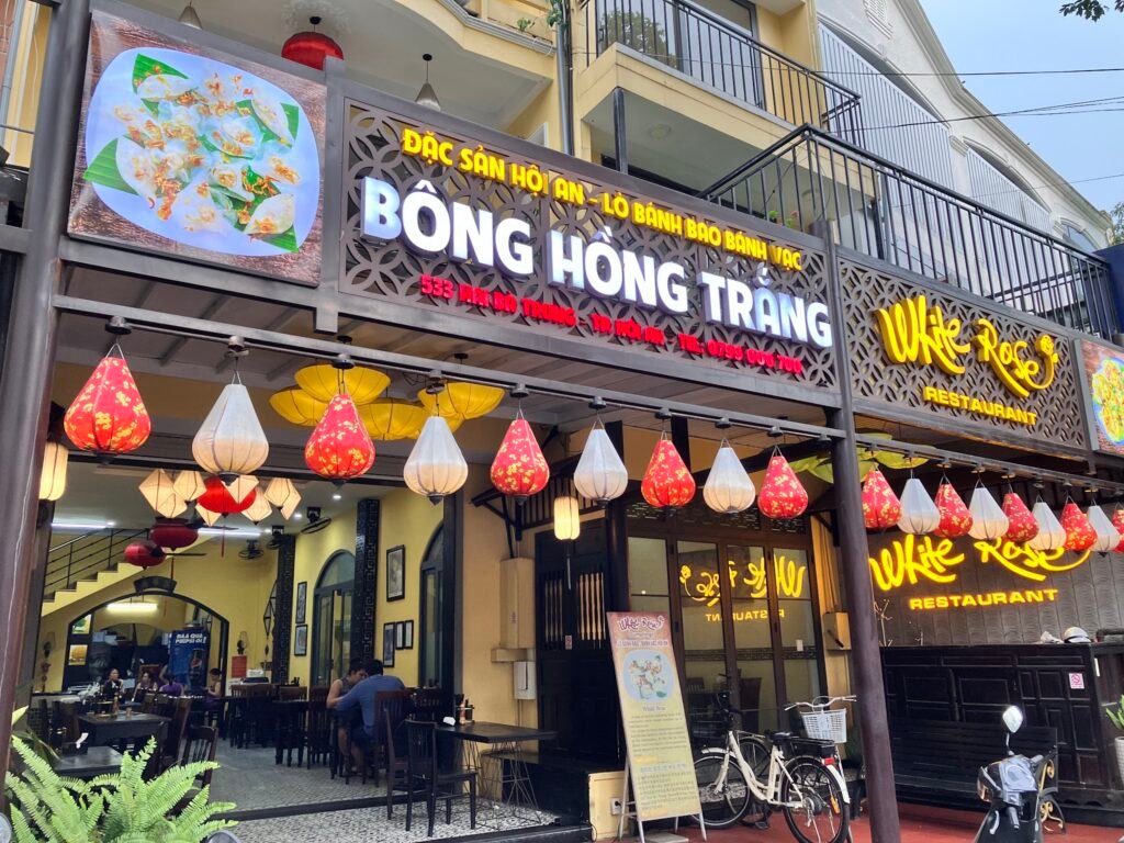 White Rose does one thing and does it well: bánh bao vạc, the shrimp dumplings shaped like white roses that Hoi An claims as its own. The menu is tiny (two to four dishes depending on who you ask), and that’s the point. You’re here for the dumplings and the fried wontons, full stop.